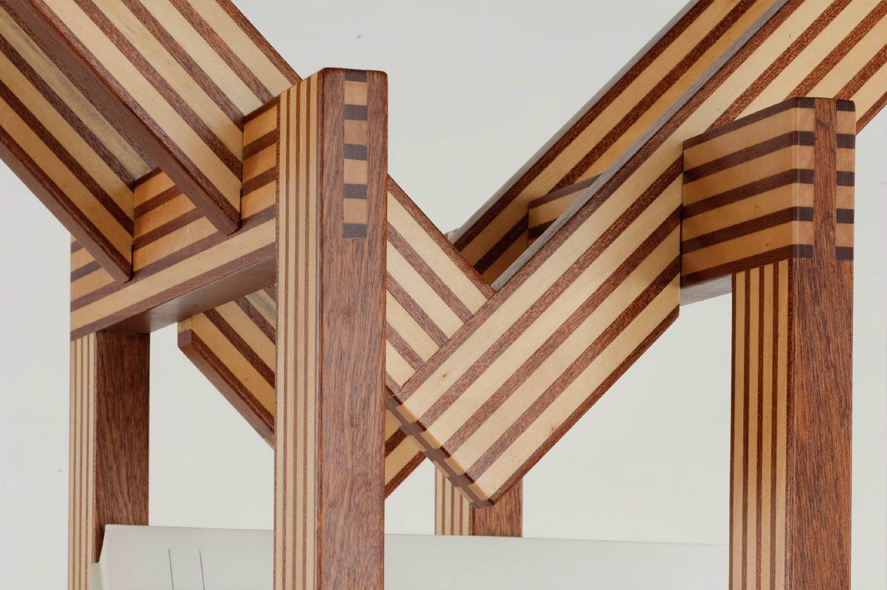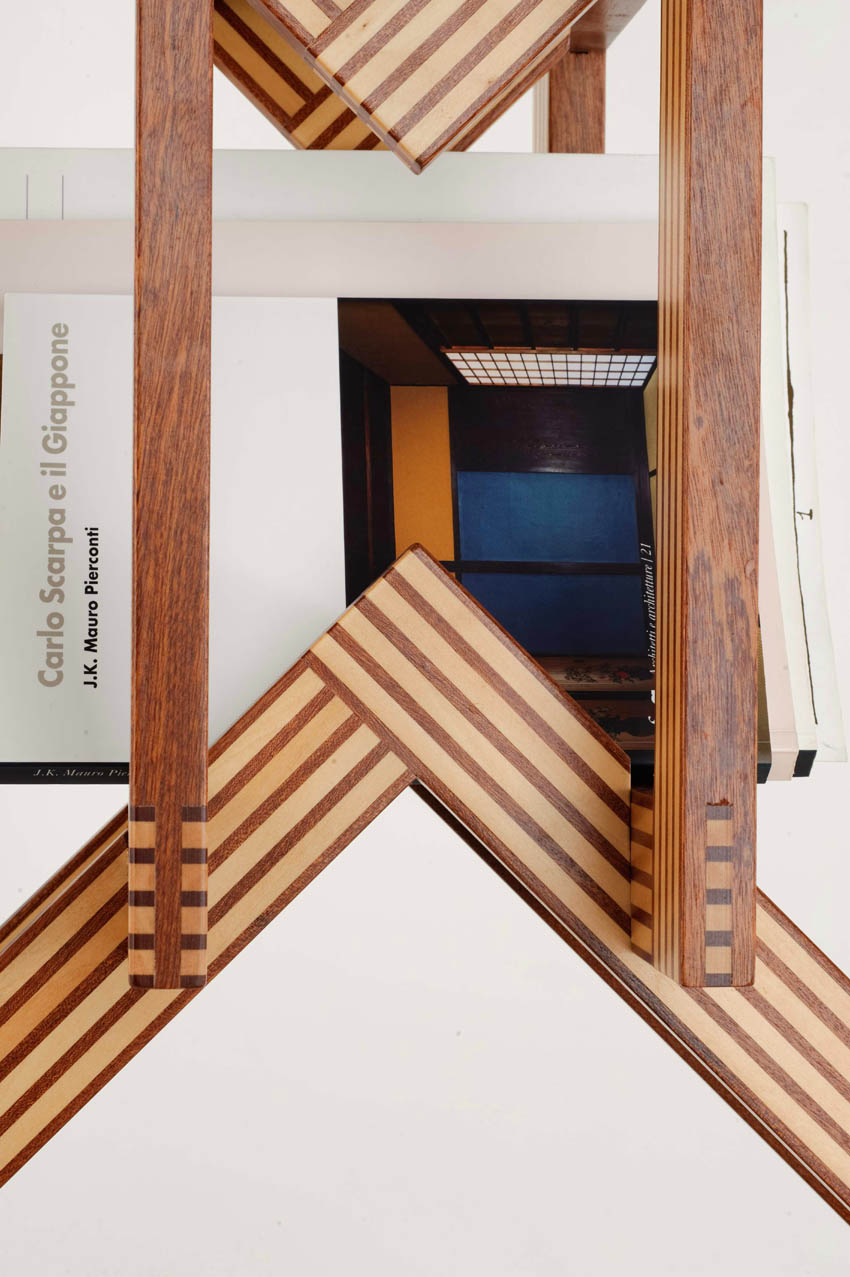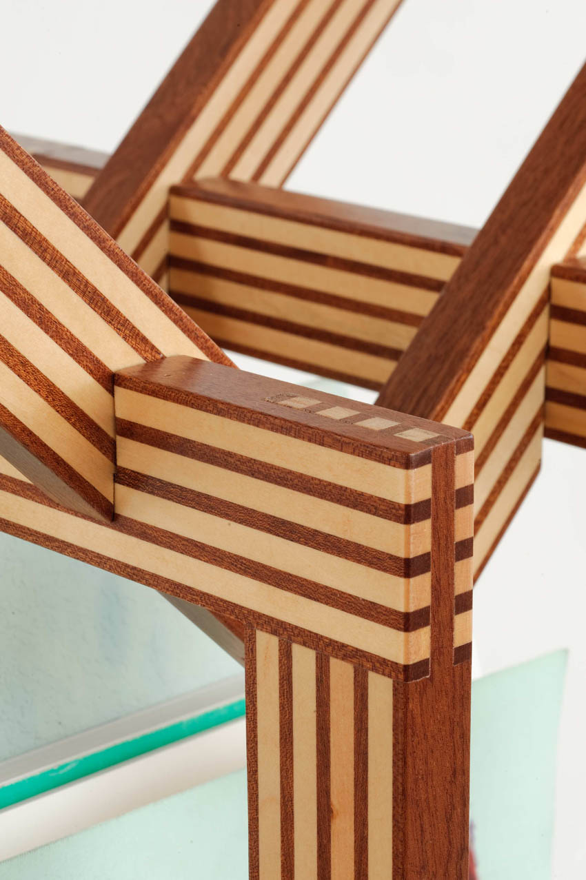 Per la produzione, infatti, viene applicata la tecnica della listellatura e la successiva placcatura. Seguendo i modi tradizionali dell’ebanisteria, masselli di essenze nobili vengono tagliati in listelli e ricomposti tra loro a secondo del colore e delle venature. Questa tecnica ha l’obiettivo di creare texture originali capaci di esaltare le caratteristiche di lavorazione, tra cui l’incastro ortogonale a tenone e mortasa posto ad unione dei singoli traversi componenti i quadri.
